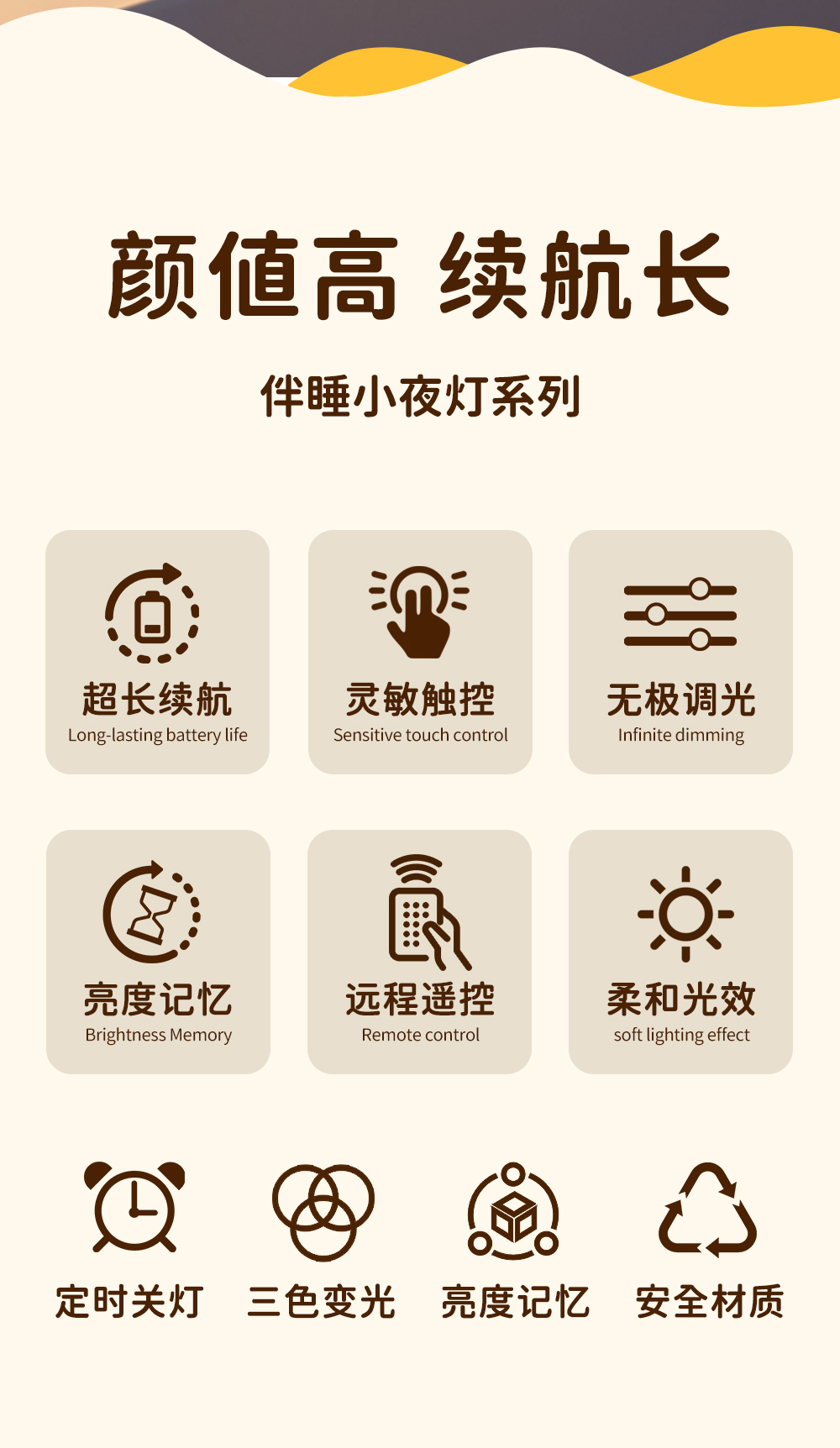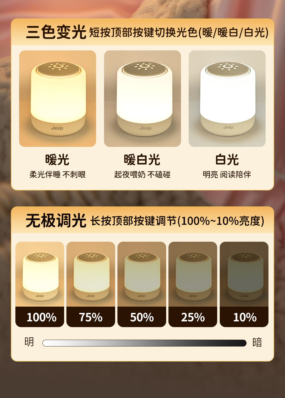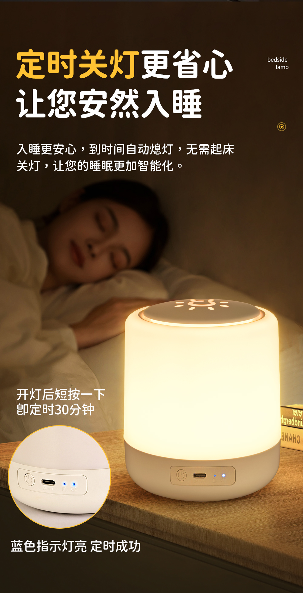 遥控小夜灯卧室睡眠灯2025新款台灯长续航充电床头灯婴儿喂奶护眼
