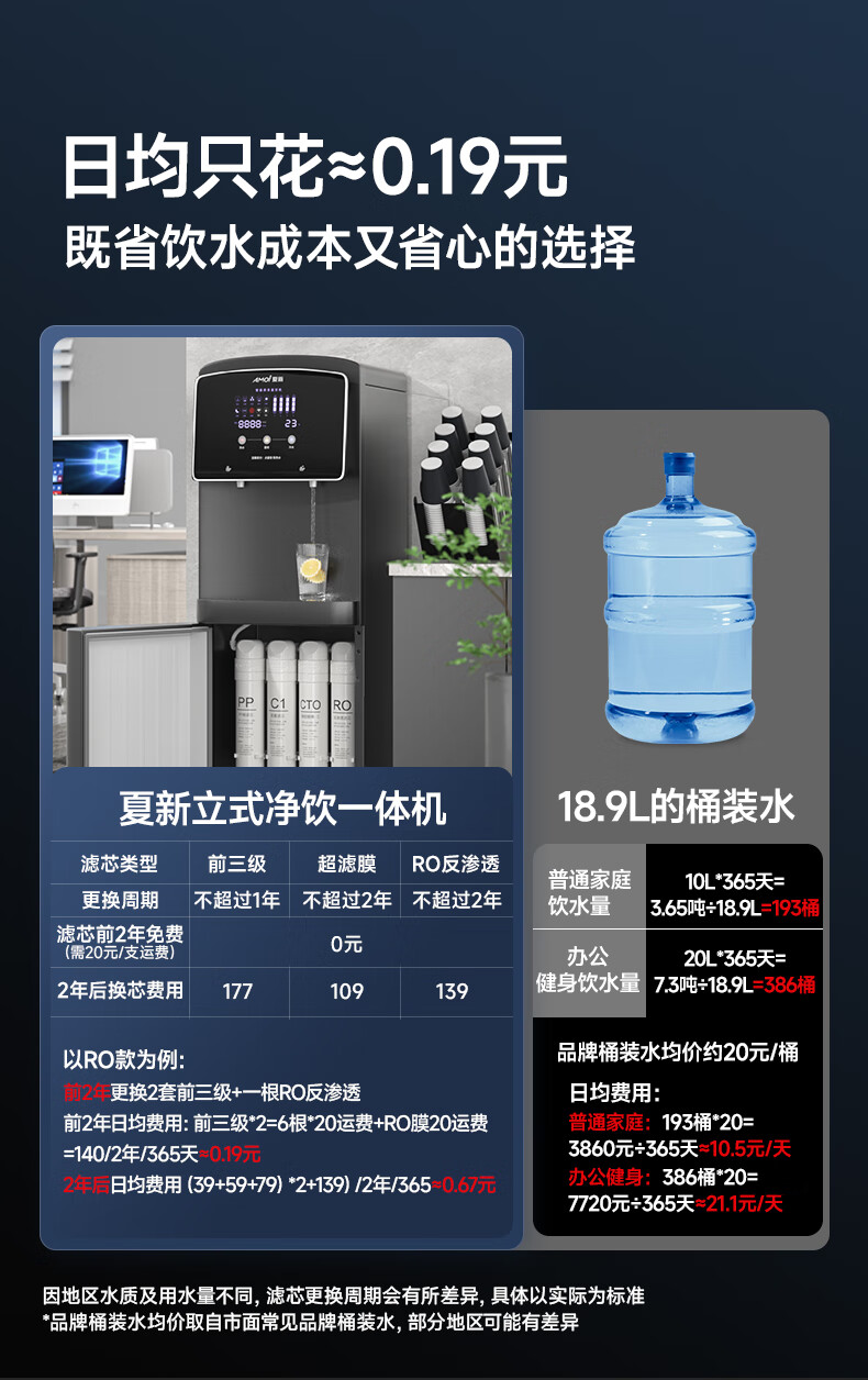 夏新办公室净饮水机制冷制热家用立式净水器直饮RO过滤一体机商用