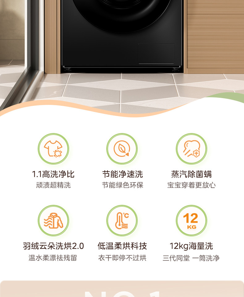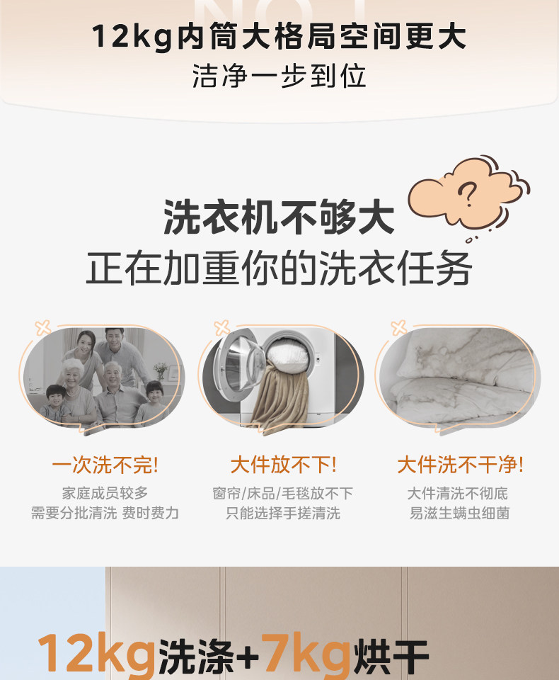12/10kg滚筒洗衣机除菌全自动大...