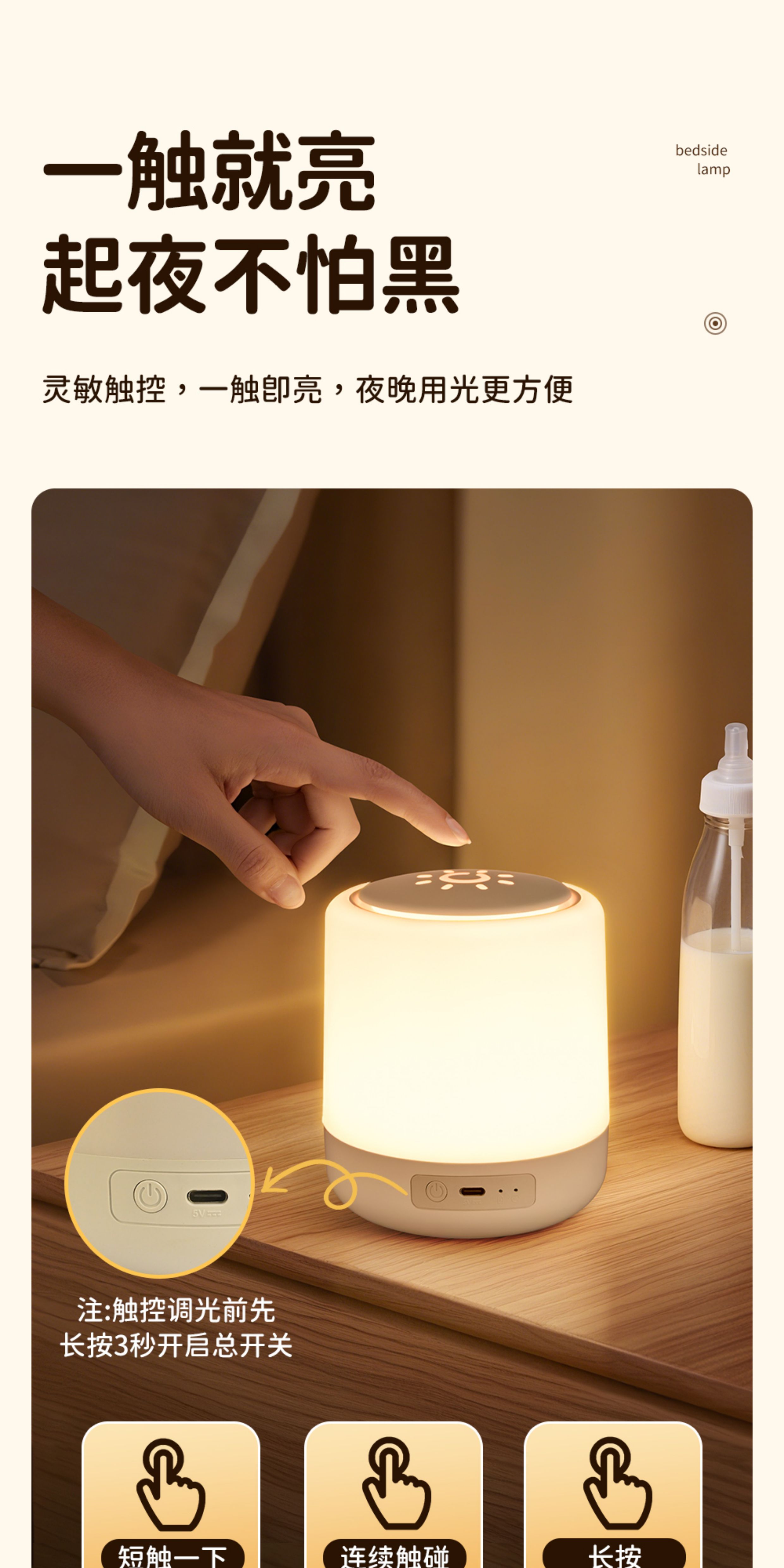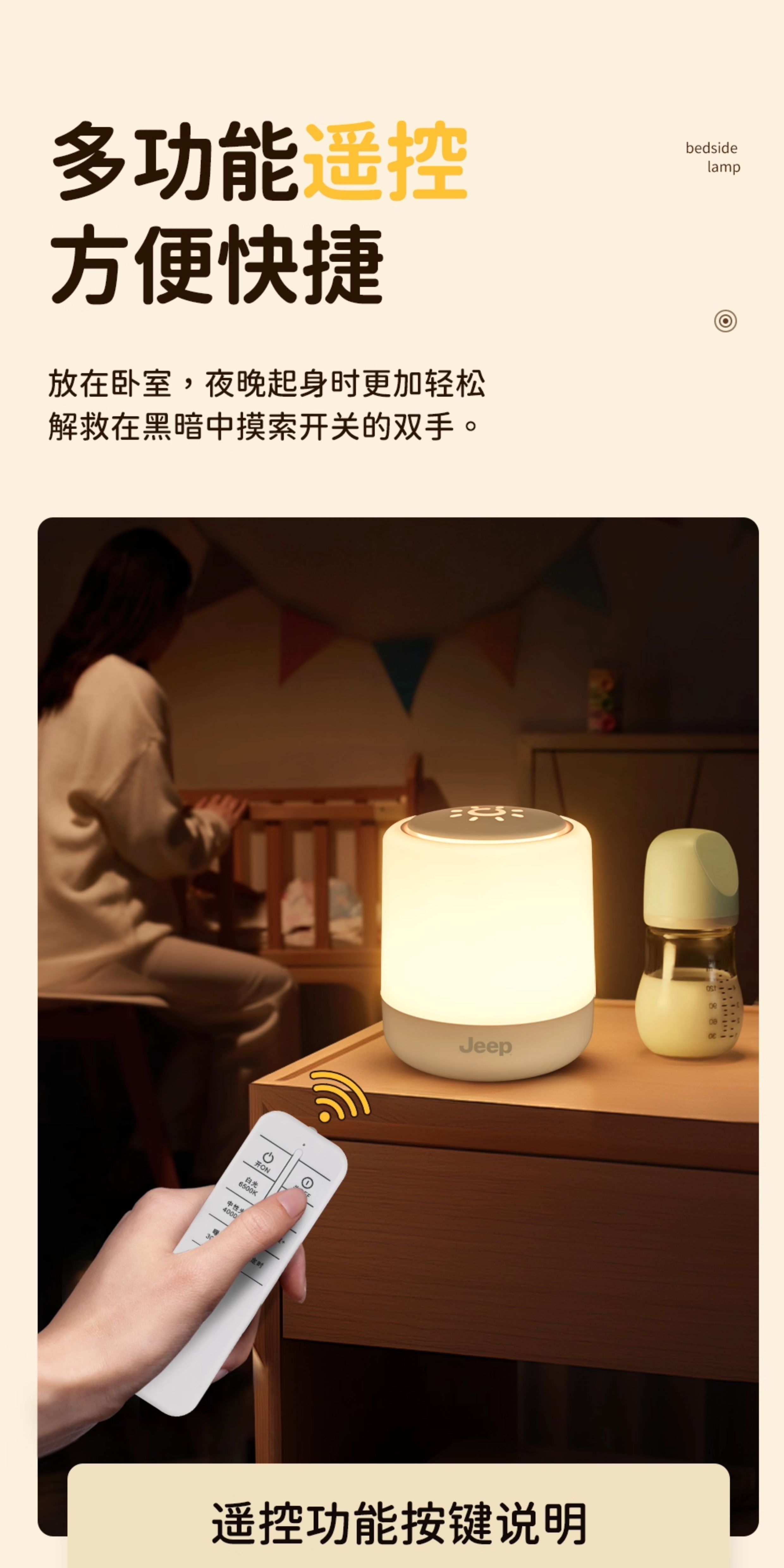 遥控小夜灯卧室睡眠灯2025新款台灯长续航充电床头灯婴儿喂奶护眼
