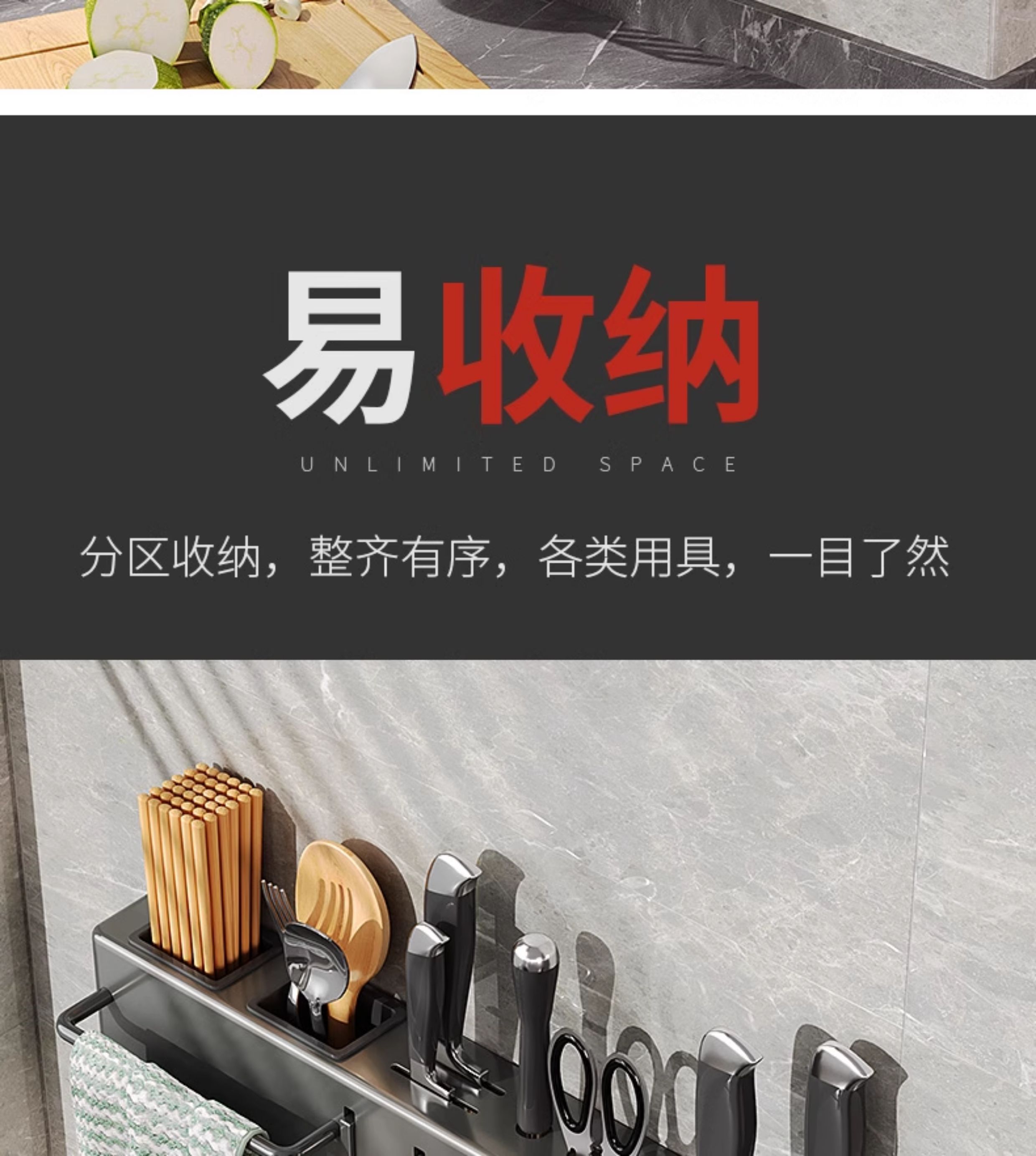 多功能刀架厨房刀具用品置物架筷笼一体收纳架筷子筒壁挂式免打孔