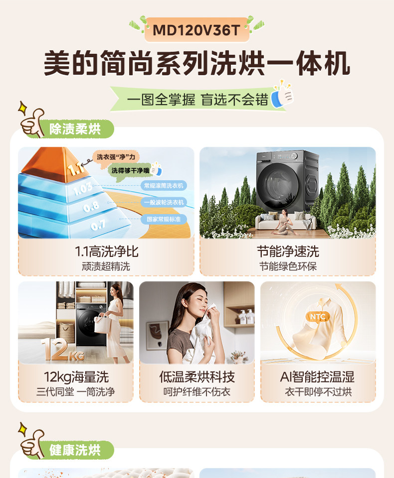 12/10kg滚筒洗衣机除菌全自动大容量家用洗烘一体36T