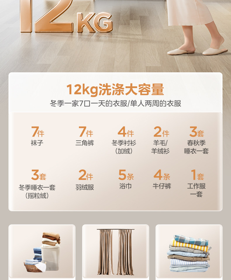 12/10kg滚筒洗衣机除菌全自动大...